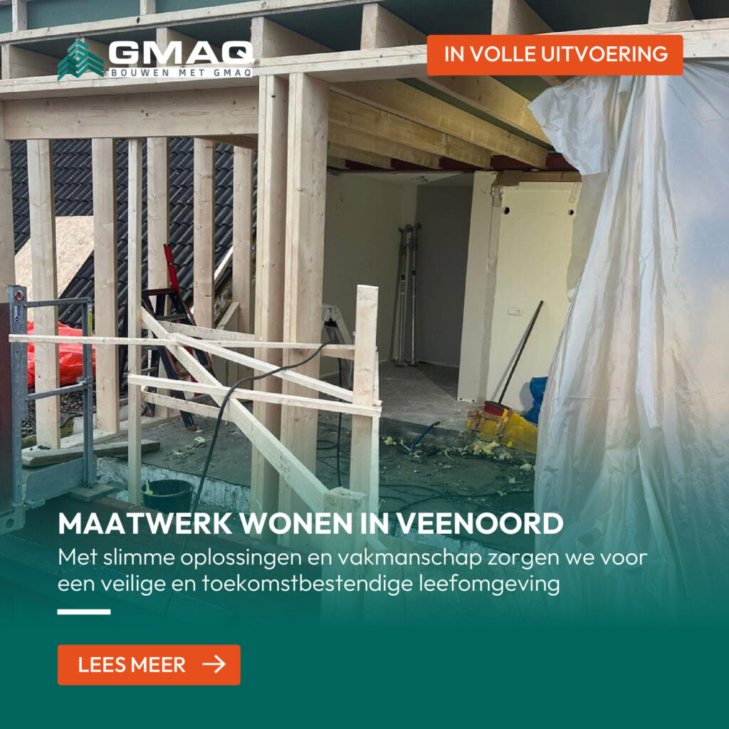 Bij GMAQ begeleiden wij verbouwingen in Veenoord en omgeving van begin tot eind. Of het nu gaat om een aanbouw, badkamer, woningaanpassing of complete renovatie: wij zorgen voor een praktische en duurzame oplossing.
